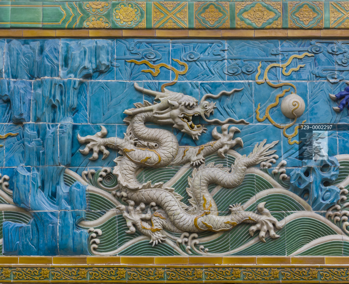 图片标题: 北京北海公园九龙壁白龙(升龙)局部