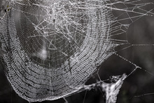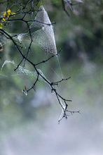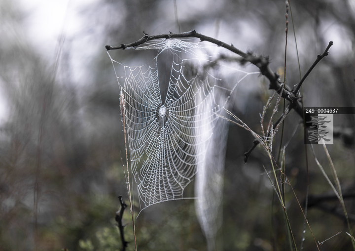 图片标题: 河南西部伏牛山树林中闪闪发亮的蛛网