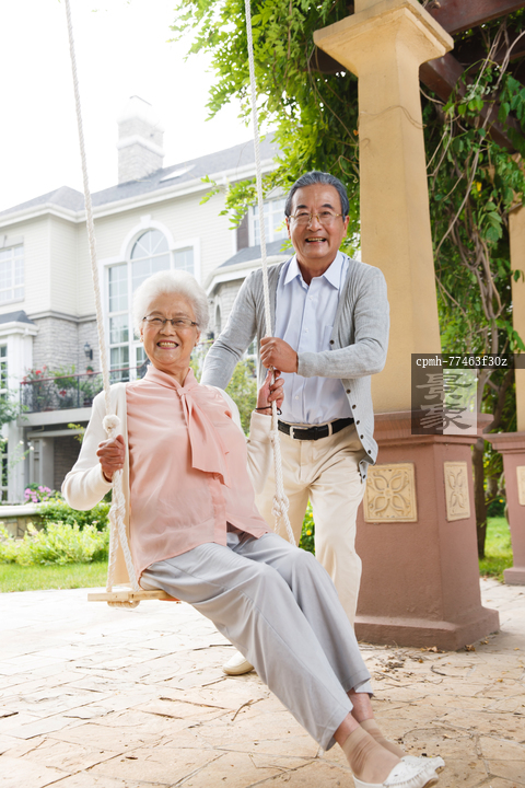 图片标题: 快乐的老年夫妇荡秋千