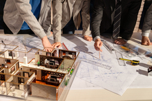 图片标题: 建筑设计师讨论房屋设计