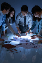图片标题: 建筑设计师讨论图纸设计