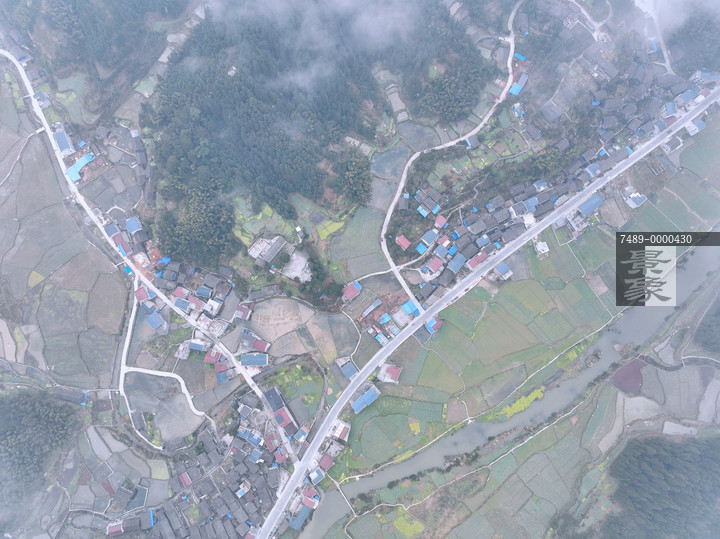 图片标题: 贵州锦屏:雾锁乡村美如画