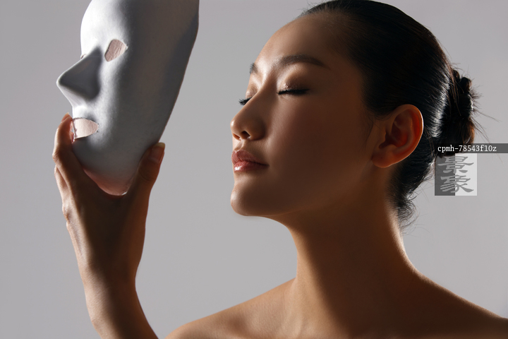 图片标题: 年轻女人拿着面膜