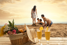 图片标题: 沙滩上青年夫妇为孩子拍照