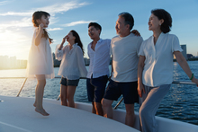 图片标题: 快乐的一家三口坐在院子里荡秋千