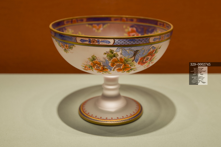 图片标题: 北京中央礼品文物管理中心-1998年葡萄牙总理赠江泽民的彩绘玻璃高足碗