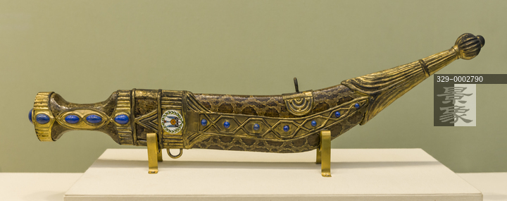 图片标题: 北京中央礼品文物管理中心-1991年镶青金石蛇皮弯刀-吉布提赠