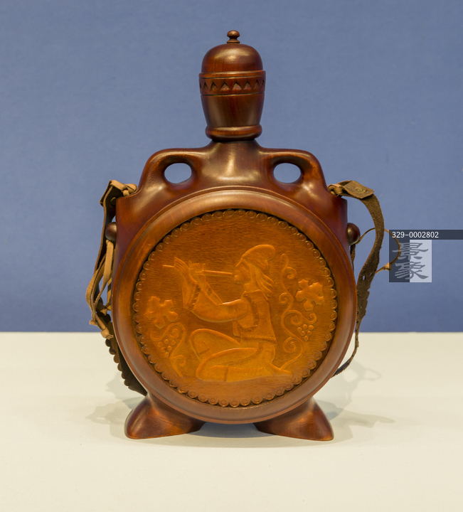 图片标题: 北京中央礼品文物管理中心-2001年镶雕花皮木扁壶-摩尔多瓦赠