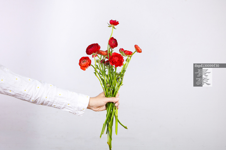 图片标题: 青年女人手拿花束