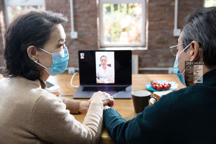 图片标题: 老年夫妇在家线上看医生