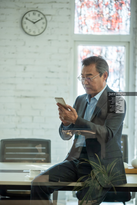 图片标题: 商务男士在办公室里看手机