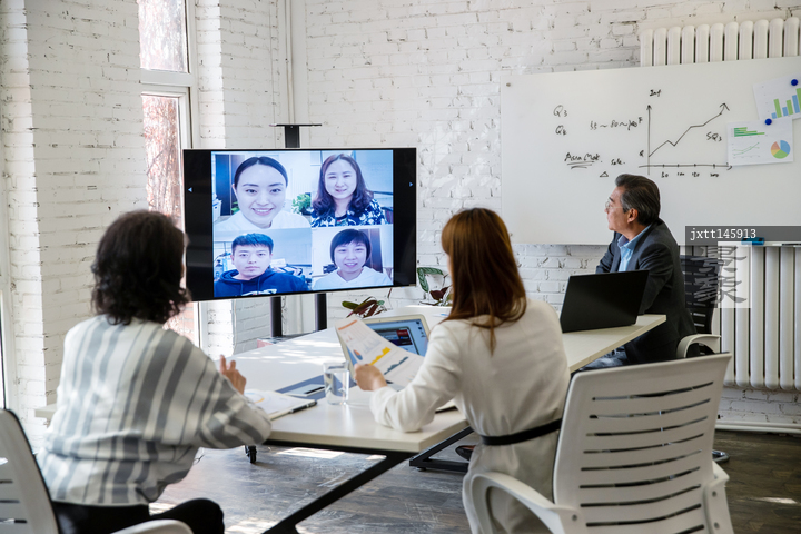 图片标题: 商务团队在会议室开视频会议