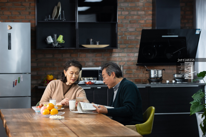 图片标题: 老年夫妇吃早餐