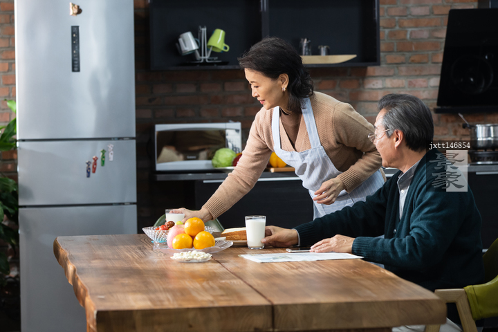 图片标题: 老年夫妇准备吃早餐