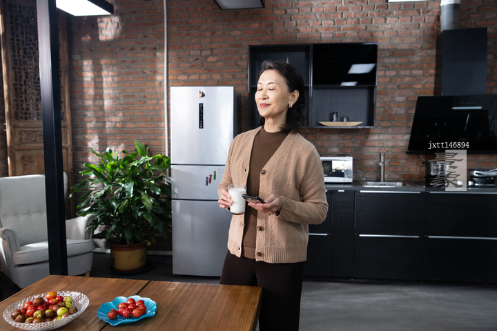 图片标题:     拿着牛奶准备吃早餐的老年人