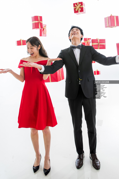 图片标题: 伸手接礼物的幸福伴侣