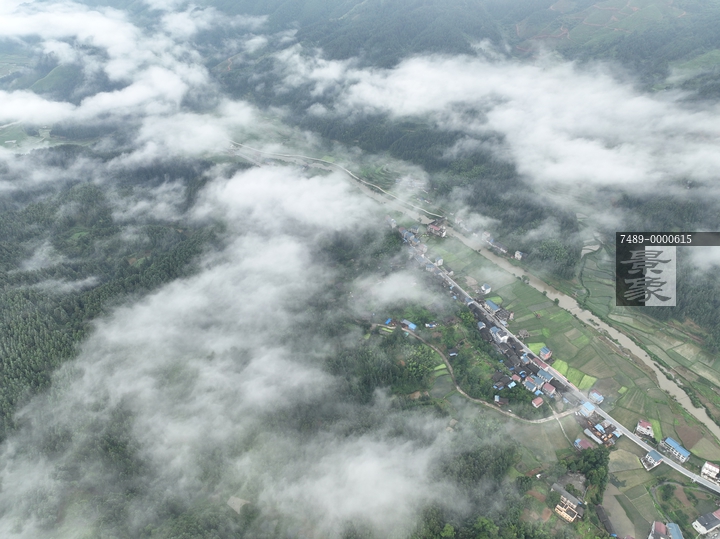 图片标题: 贵州锦屏:夏日晨雾山村美