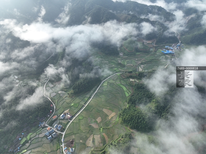 图片标题: 贵州锦屏:夏日晨雾山村美