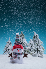 图片标题: 雪地上的松树和金色麋鹿