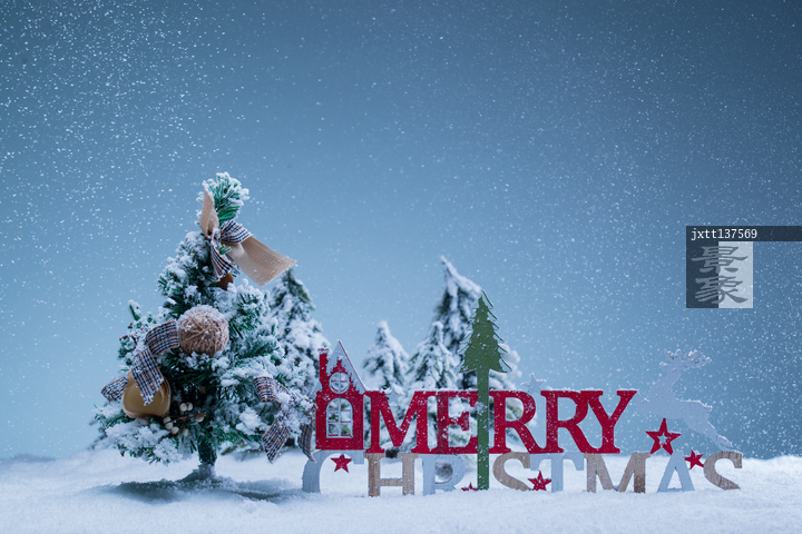 图片标题: 圣诞树和圣诞英文摆件