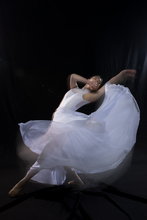 图片标题: 废墟前跳芭蕾舞的青年女人
