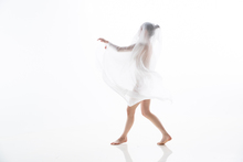 图片标题: 废墟前跳芭蕾舞的青年女人