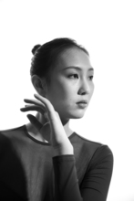 图片标题: 穿红色裙子的青年女人在户外跳芭蕾舞