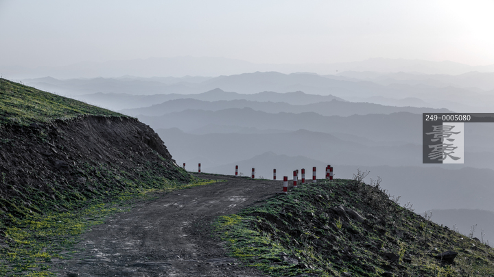 图片标题: 豫西高山上延伸的简易公路宁静、苍凉,