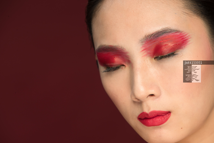 图片标题: 红色眼影彩妆美女