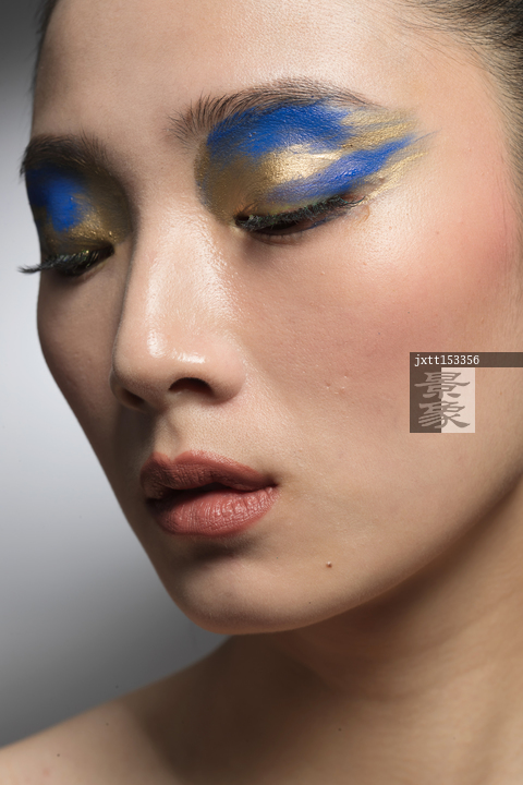 图片标题: 蓝金色系眼影美女