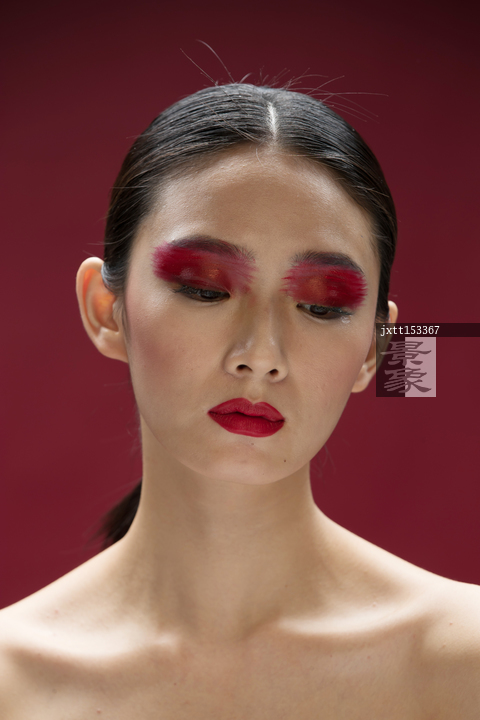 图片标题: 红色眼影彩妆美女