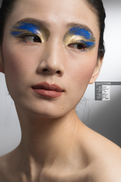图片标题: 蓝金色系眼影美女
