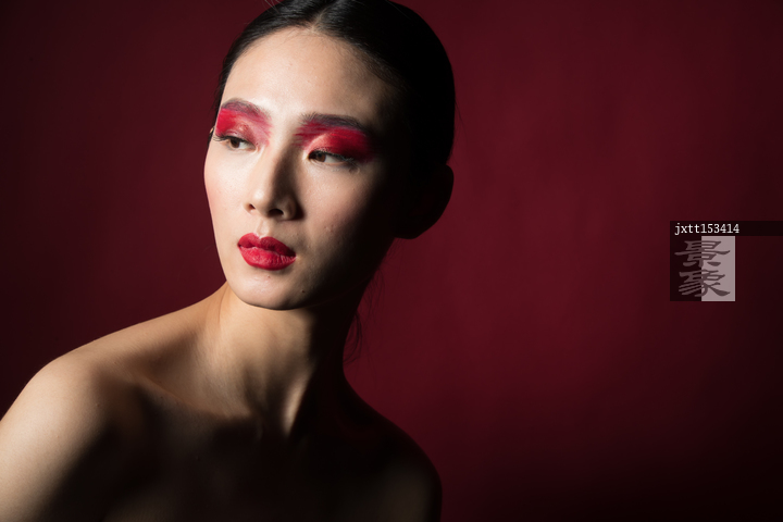 图片标题:     红色眼影彩妆美女