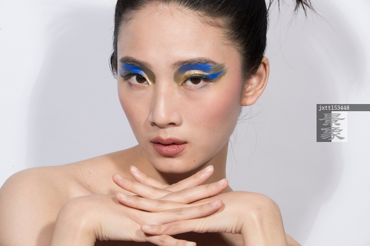 图片标题: 蓝金色系眼影美女肖像