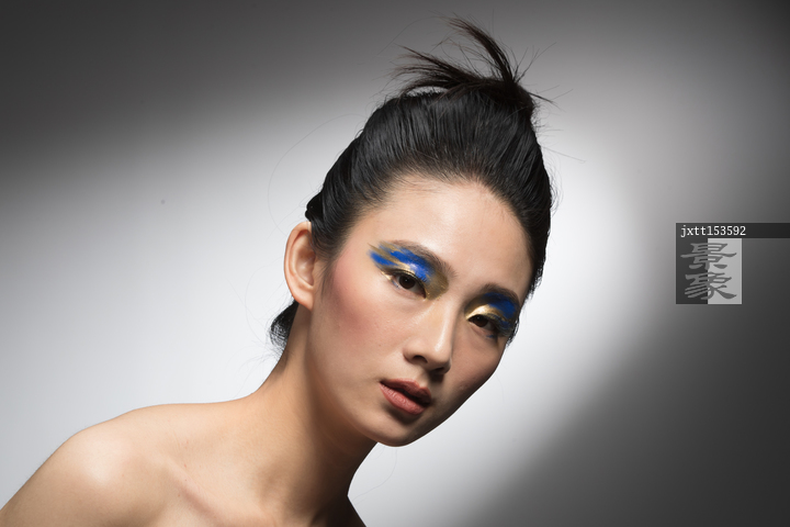 图片标题: 蓝金色系眼影美女肖像