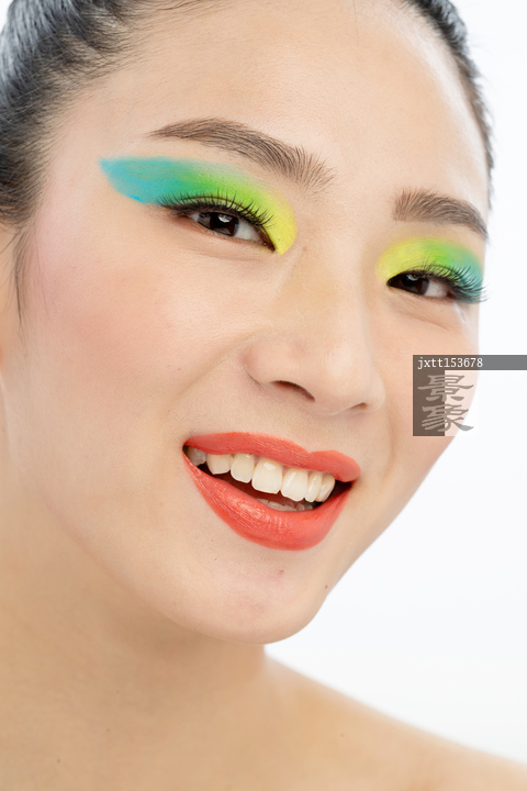 图片标题: 蓝绿色系眼影美女
