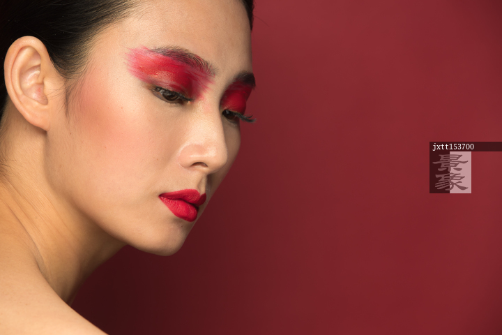 图片标题: 红色眼影彩妆美女