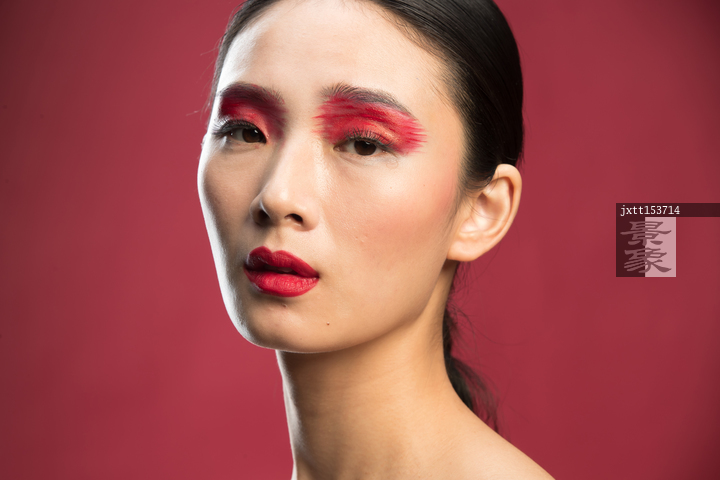 图片标题:     红色眼影彩妆美女肖像