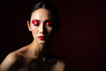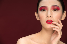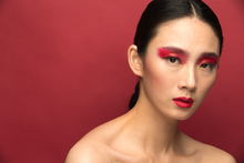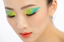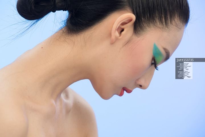 图片标题:     蓝绿色系夸张眼影美女妆面特写