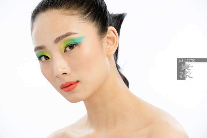 图片标题: 蓝绿色系眼影美女
