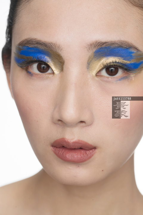图片标题:     蓝金色系眼影美女肖像