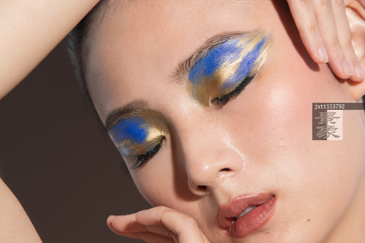 图片标题:     蓝金色系眼影美女