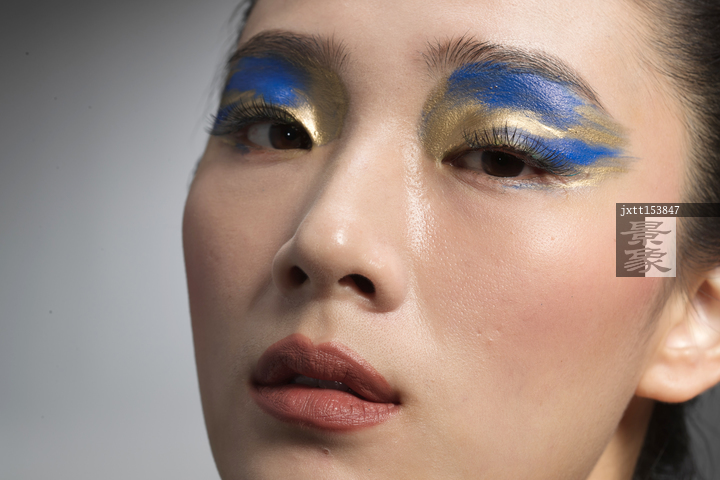 图片标题: 蓝金色系眼影美女