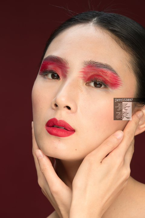 图片标题: 红色眼影彩妆美女肖像