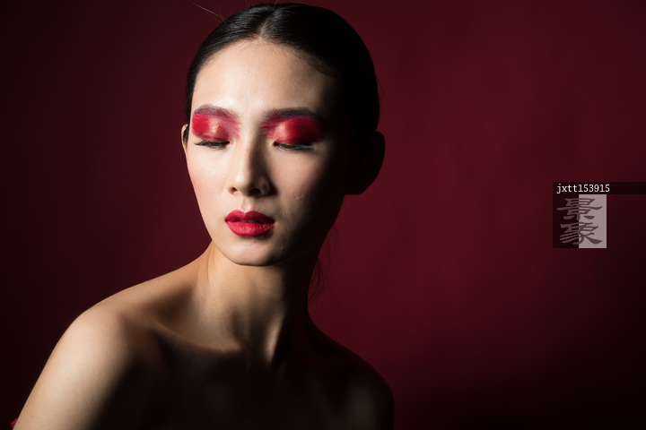 图片标题: 红色眼影彩妆美女