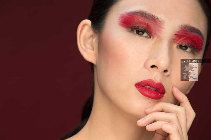 图片标题: 红色眼影彩妆美女肖像