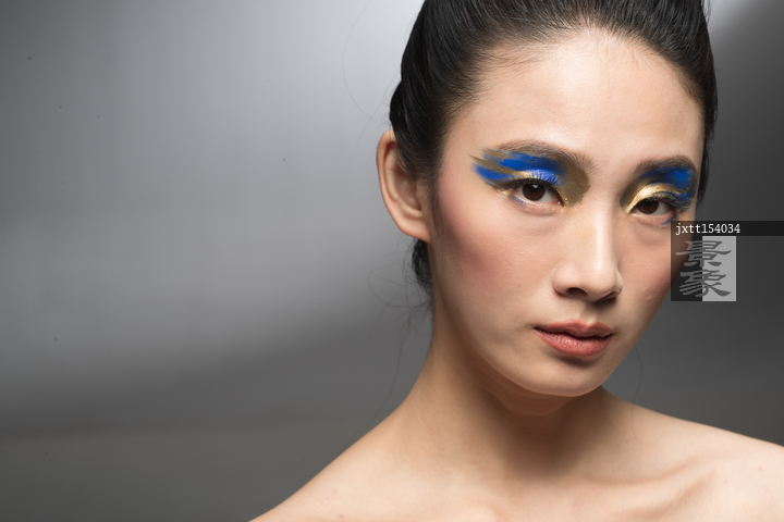 图片标题: 蓝金色系眼影美女肖像