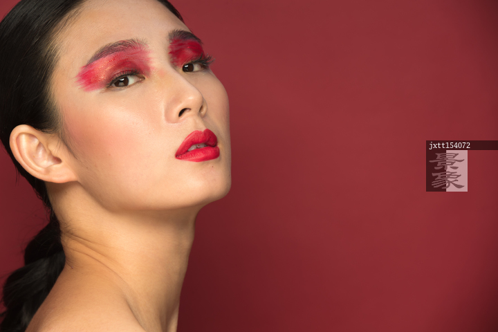 图片标题: 红色眼影彩妆美女