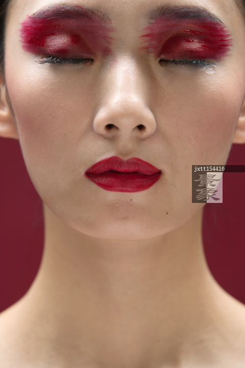 图片标题:     红色眼影彩妆美女