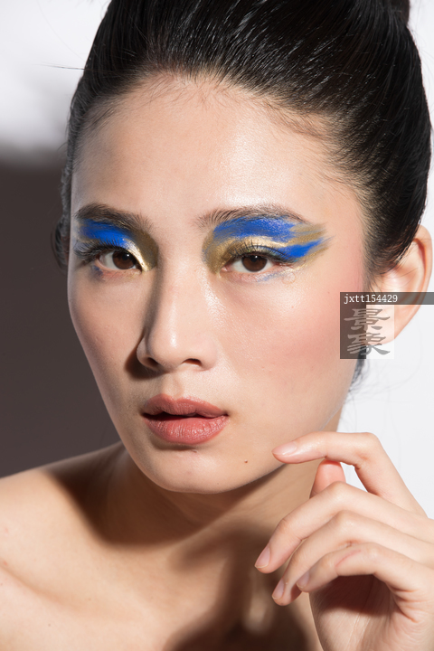 图片标题: 蓝金色系眼影美女肖像